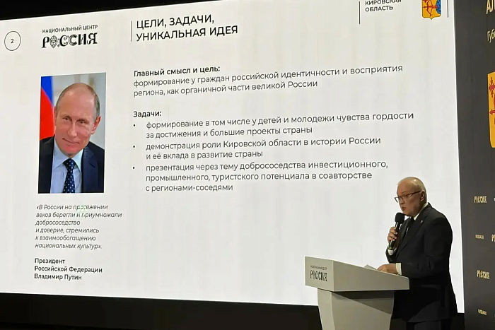 Губернатор Кировской области Александр Соколов в Москве защитил концепцию проекта строительства в регионе филиала Национального центра «Россия». Защита состоялась под председательством первого заместителя руководителя Администрации Президента Российской Федерации Сергея Кириенко и заместителя руководителя Администрации Президента Максима Орешкина. В мероприятии приняли участие дважды Герой Советского Союза, прославленный космонавт Виктор Савиных, сенатор России от Кировской области, генерал-полковник Виктор Бондарев и активисты Движения Первых.